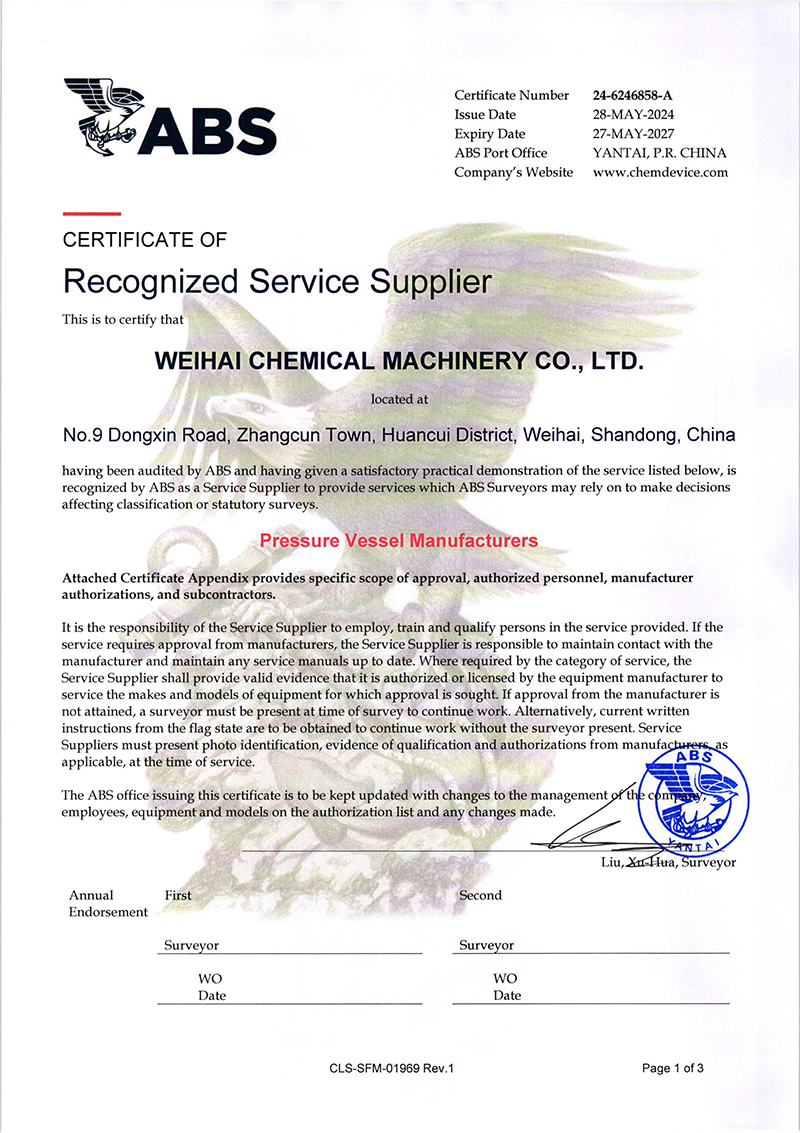 近日威?;C械有限公司(以下簡稱“威?;瘷C”)壓力容器產(chǎn)品成功獲得了美國船級社(ABS)頒發(fā)的權威認證,是繼復合板產(chǎn)品ABS認證后拿到第二張ABS證書,這標志…